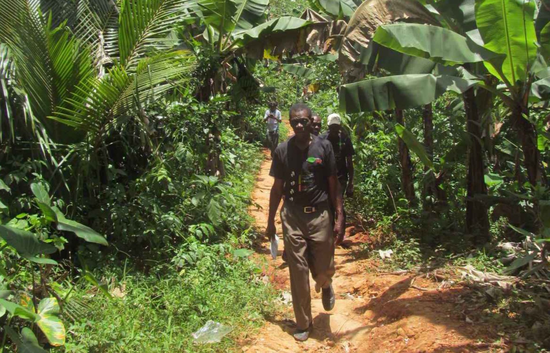 26 mai 2017 en après-midi, on déambule le long du sentier de la Route du Café de Fonds Jean-Noël, une petite communauté rurale d’Haïti située dans la commune de Marigot, au Sud du pays, à quatre heures de route de Port-au-Prince.