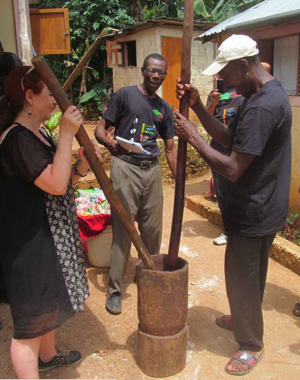 Puis c’est enfin le moment tant attendu de l’expérience café! On met le feu puis nous invite à torréfier (griller) le café, le broyer (piler) et le faire couler dans le filtre traditionnel «selon la bonne vieille méthode de grand-mère» jusqu’à la dégustation.